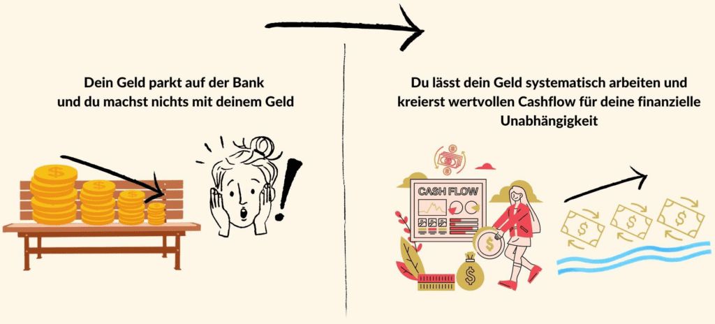 - Erfahre, wie du dein angespartes Einkommen mobilisierst und in wertvolles, systematisches Vermögen umwandelst, anstatt es durch die Inflation zu verlieren.